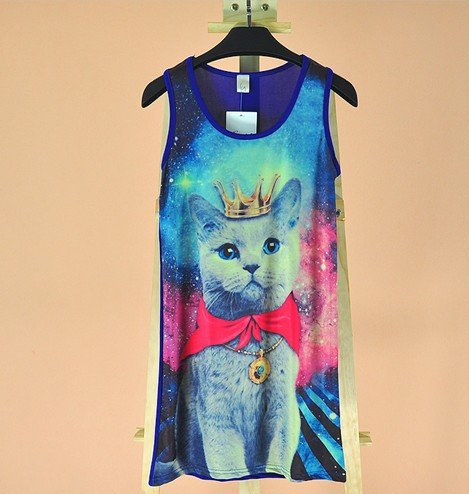 This tank comes in one size and features a royal cat in front of our popular cosmic scene. Two colors.